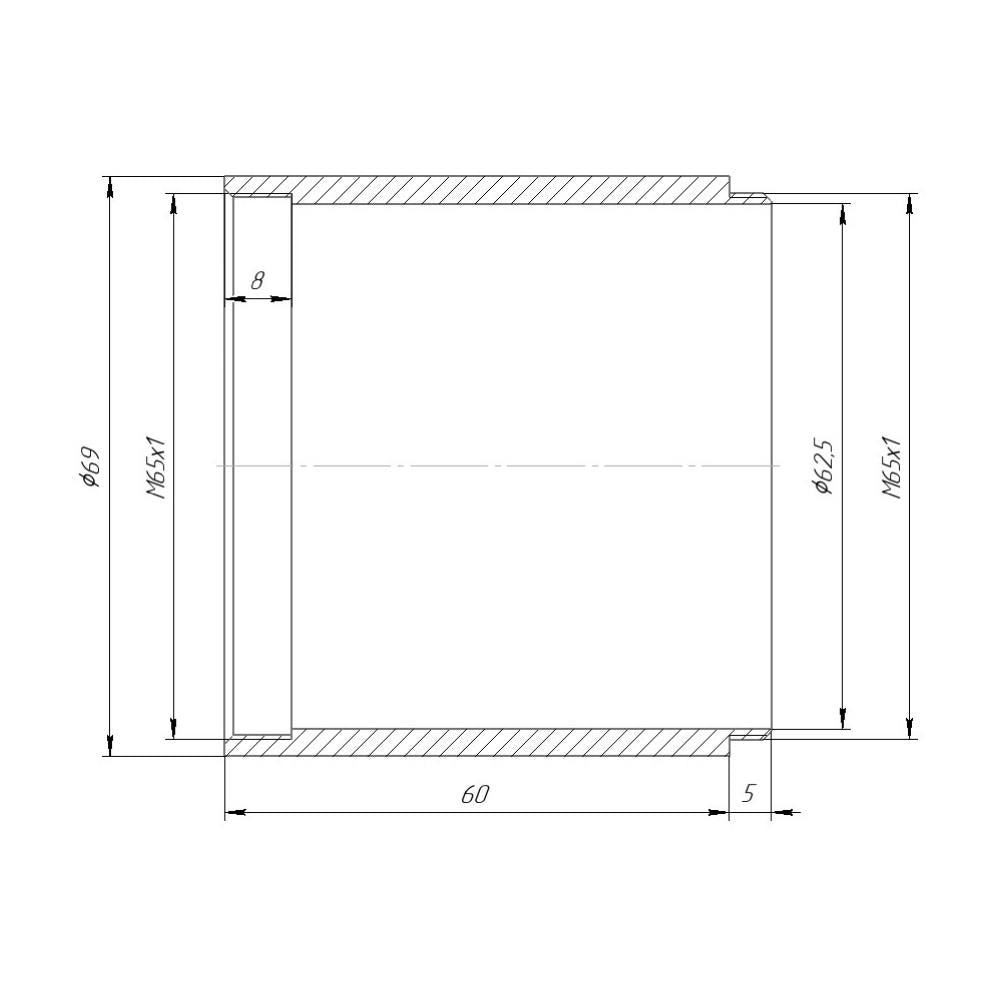 Front side has female M65x1 thread, rear part has male M65x1 thread.
