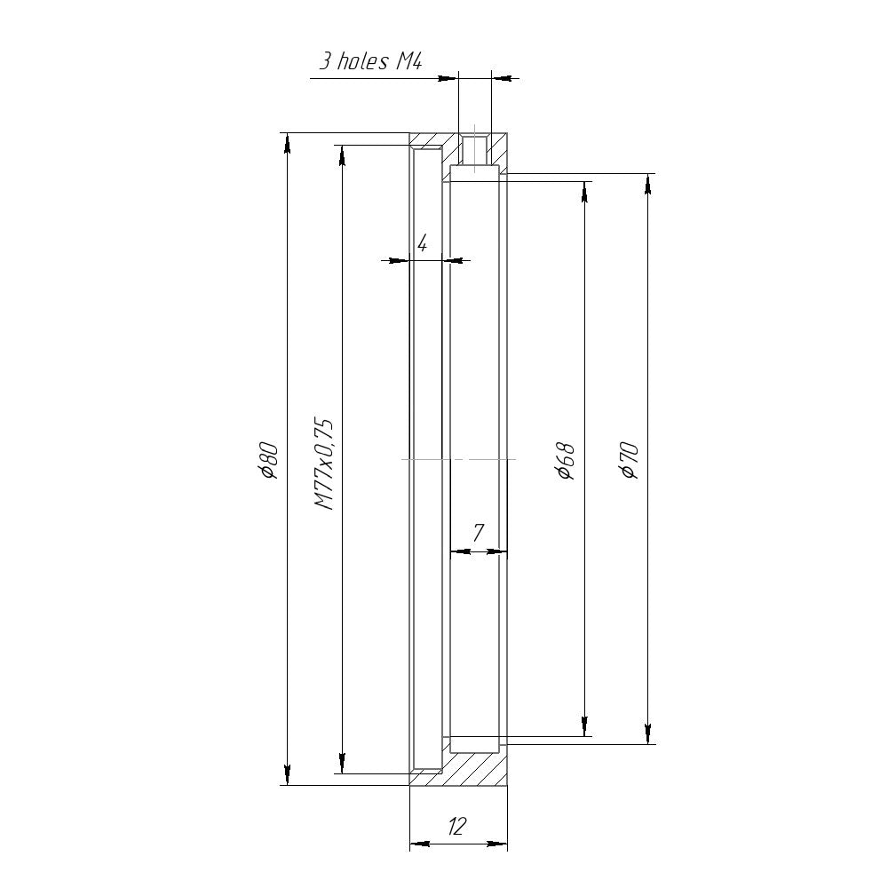 - Front side - M77x0.75 female thread