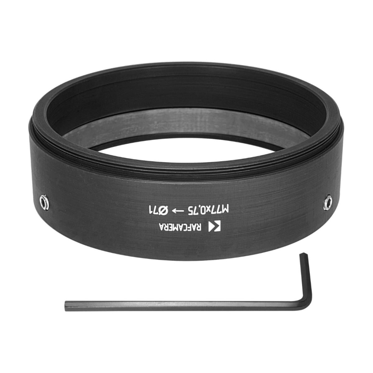 71mm clamp to M77x0.75 male thread adapter (for Schneider Cinelux lenses)