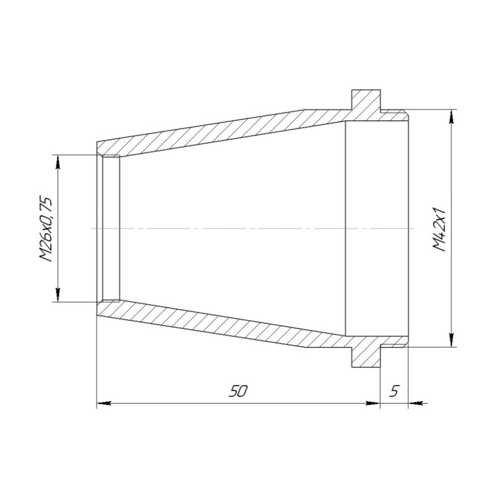 M26x0.75 female to M42x1 male thread adapter, cone