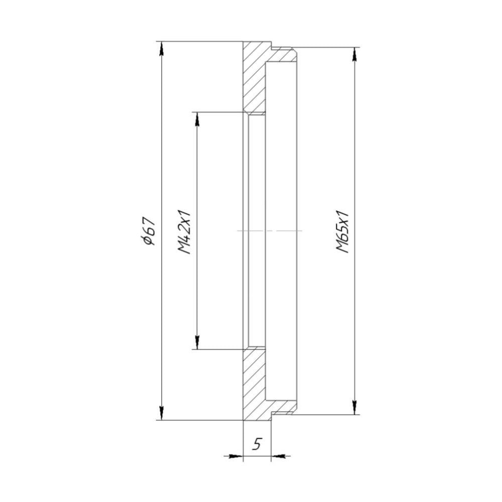This adapter allows using lenses with M42x1 mount on focusing helicoids with M65x1 thread.