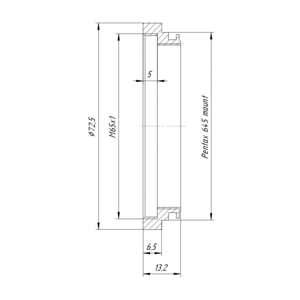 This adapter allows using Chinese focusing helicoids with M65x1 thread mount on Pentax 645 cameras.