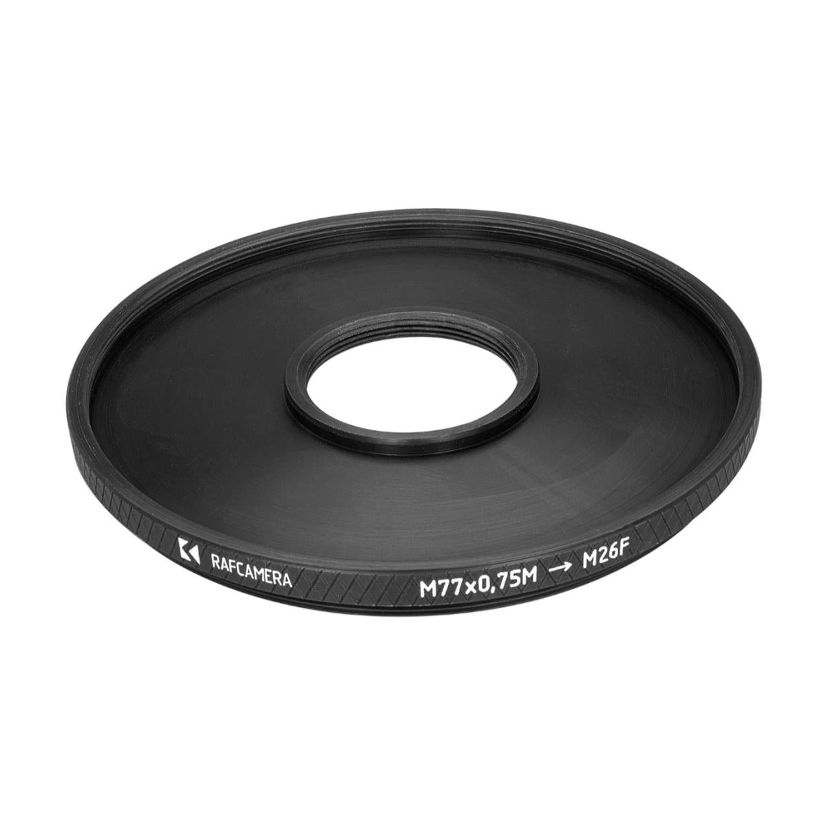 M77x0.75 male to M26x0.7 (0.75) female thread adapter (step-down ring)