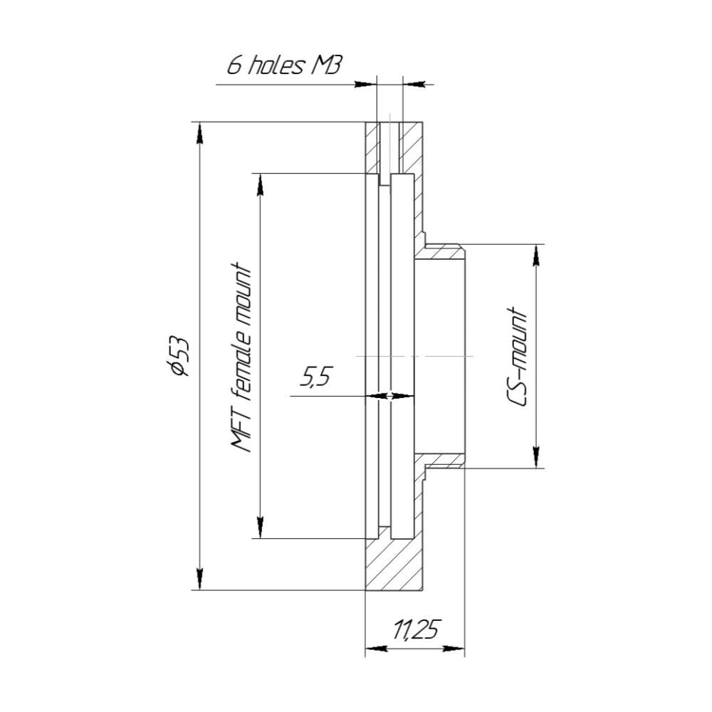 <p>This adapter allows mounting MFT lenses onto cameras with CS-mount. Infinity focus is provided, but no the lens should work in fully manual mode.</p>